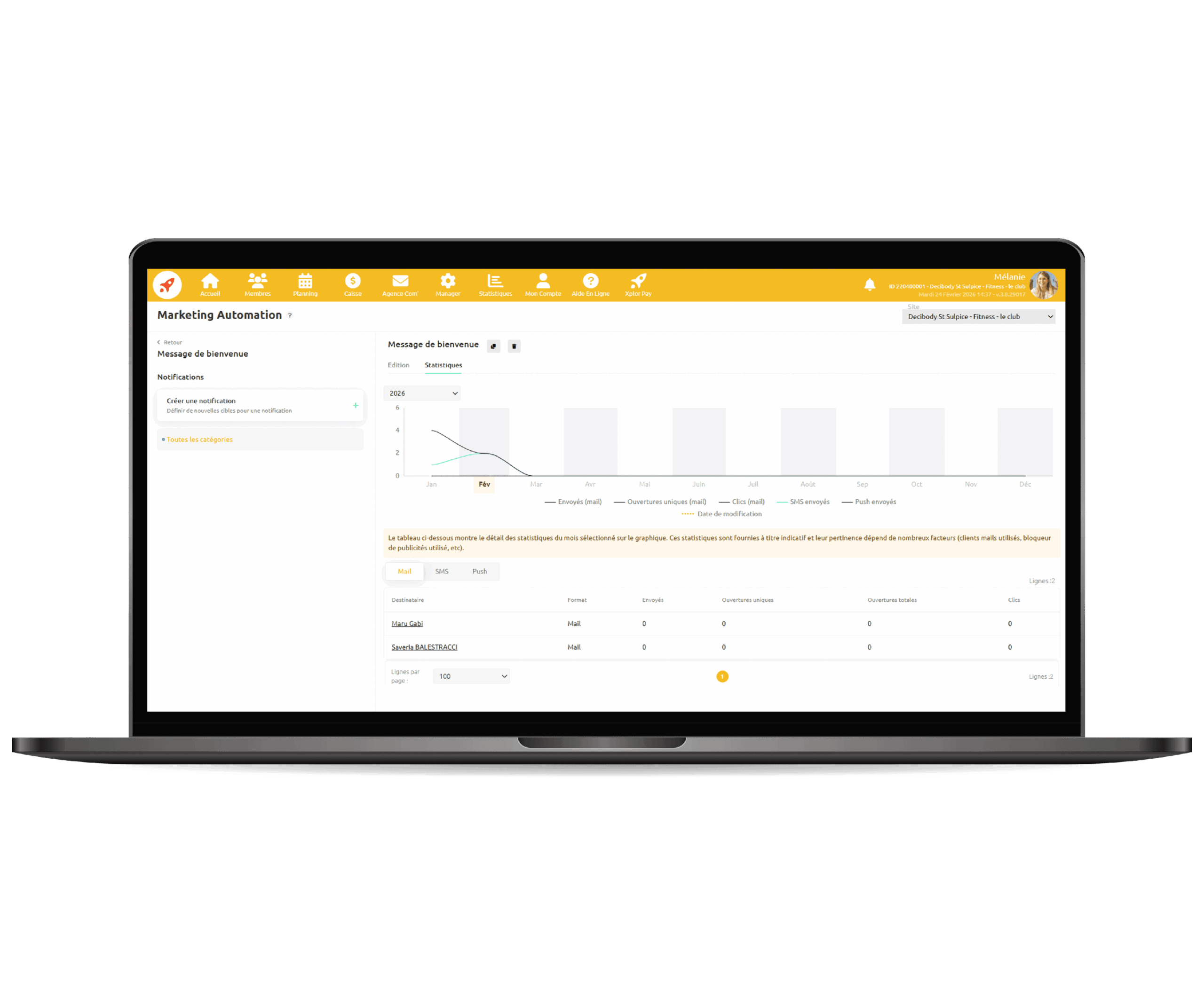 E-mail de bienvenue, confirmation et rappel de réservation, anniversaire, renouvellement d'abonnement ou promotions…